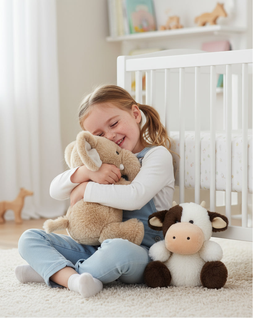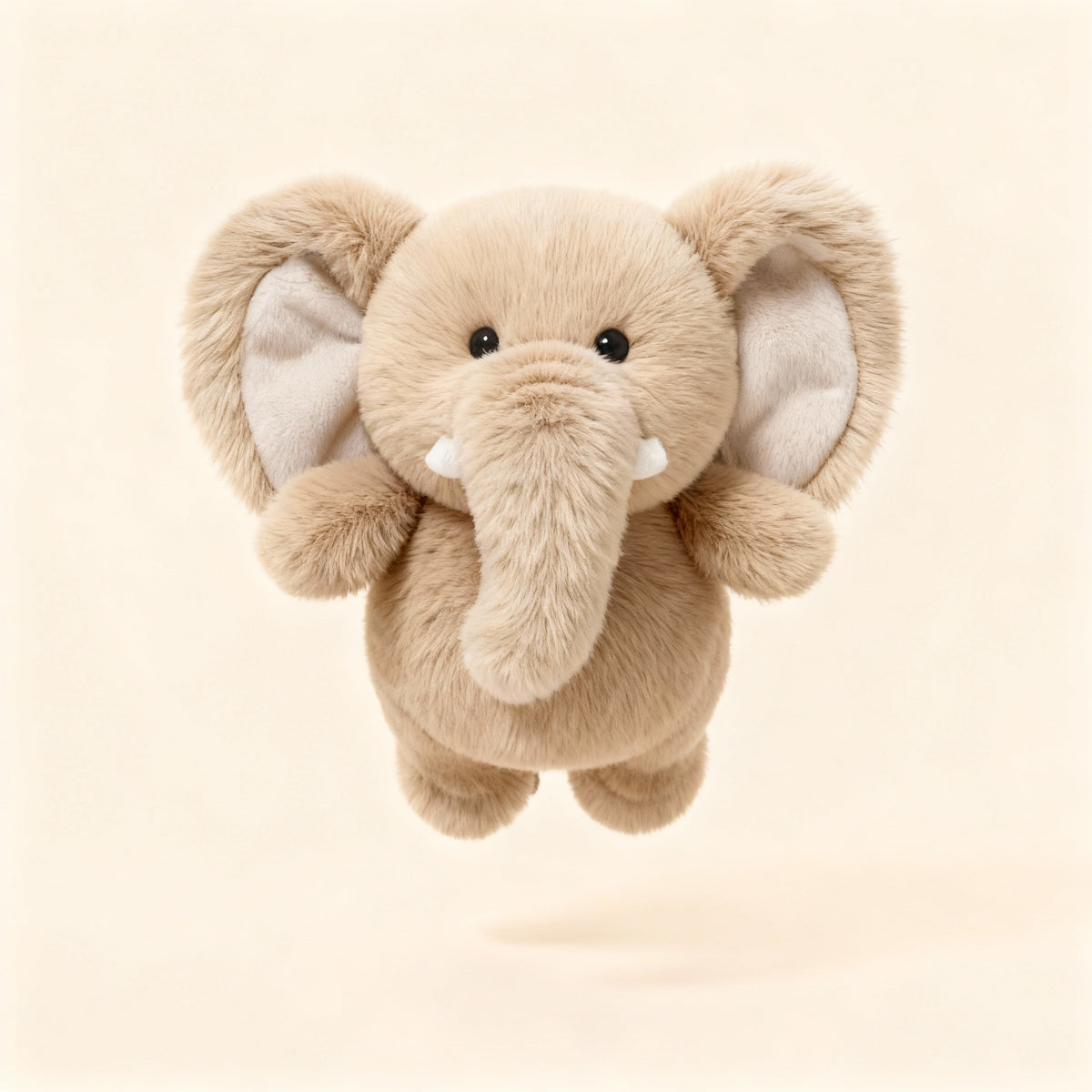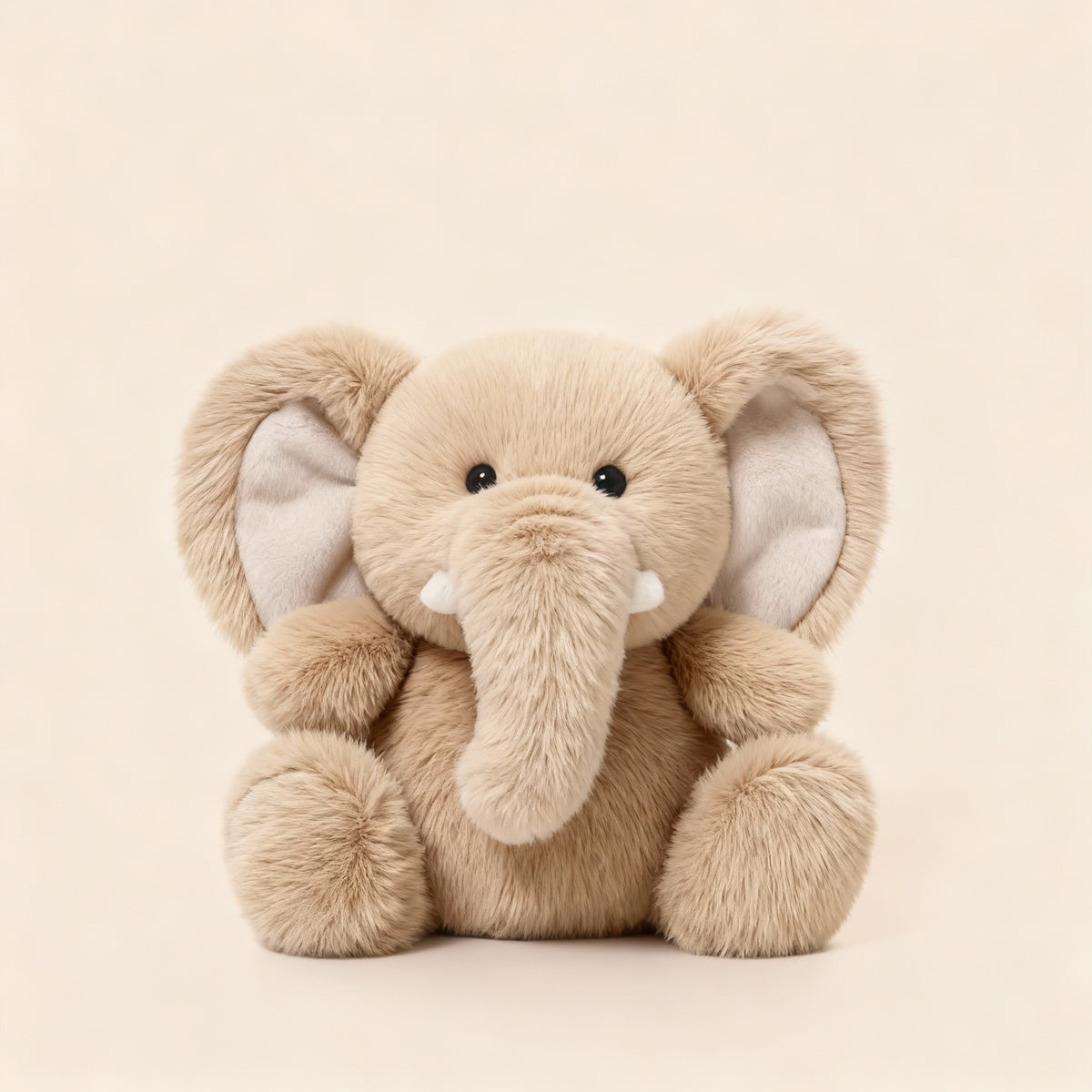 Say hello to Ellie the Elephant — the gentle giant of the Plushy family! With her big floppy ears, soft beige fur, and adorable little tusks, Ellie brings warmth, comfort, and endless cuddles to every day. Her kind eyes and huggable shape make her the perfect companion for nap time, story time, or anytime your little one needs a soft friend by their side.
